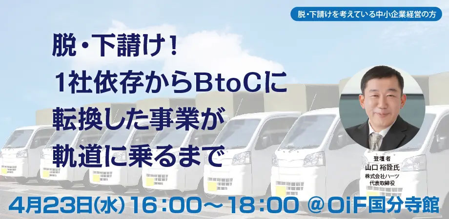 | 2025(令和7)年 | ・2025年4月23日(水)オープンイノベーションフィールド多摩(東京都中小企業振興公社)にて、代表の山口が【脱・下請け!1社依存からBtoCに転換した事業が軌道に乗るまで】と題し、レントラ便の軌跡を2時間講演しました。 ![]() |